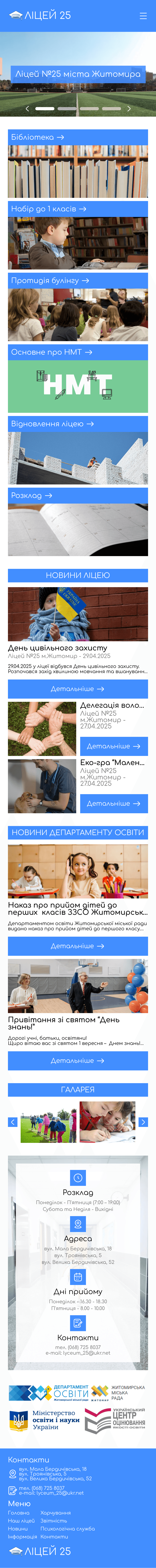 The redesign of the Lyceum 25 Zhytomyr homepage focuses on a modern, user-friendly interface that enhances accessibility and clearly communicates key information for students, parents, and educators.